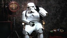 Our concept for The ExtraŽ was very similar to that of "The Production Assistant," namely the same overly eager and utterly conceited low end Hollywood worker, (played again by David Avallone), pontificating on how important his work is, and how much skill and dedication it requires while at the same time being so irritating that he is simply an annoyance to the entire crew. In the case of The ExtraŽ, he is only finally picked once there is no one left to chose from and then manages to ruin the shot with his scene stealing antics.